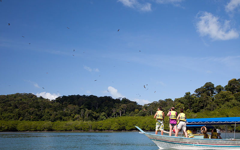 Cruising around the mangrove trails along the calm and gentle river, you will find amazing underwater ecosystems and flora, as well as mangrove plantation, eagle, and macaque.